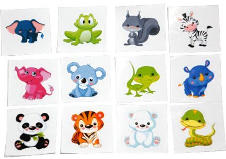 Tetovačky s motivem šťastných zvířátek 4 x 4 cm. Balení 100 ks.