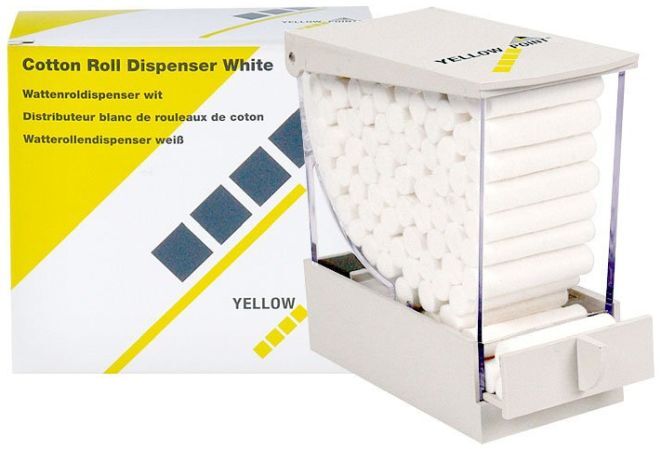 Praktický plastový zásobník a dávkovač vatových válečků. Chrání válečky proti prachu a kontaminaci. 2 pásky na dolní straně zabraňují klouzání po pracovní ploše. Čištění pomocí dezinfekčních utěrek. Rozměry: 10 cm (výška) x 4,8 cm (šířka) x 9,5 cm (hloubka). Bal.