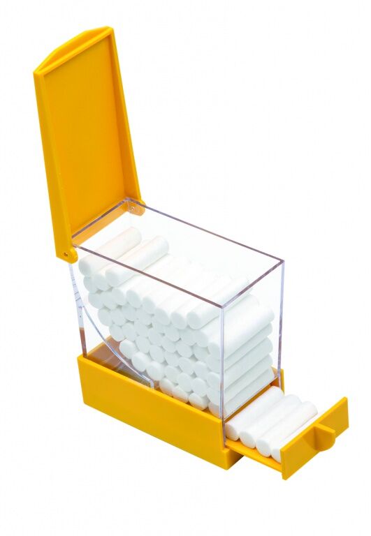 Praktický plastový zásobník a dávkovač vatových válečků. Chrání válečky proti prachu a kontaminaci. Kapacita 50 ks.