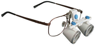 Binokulární lupové brýle s titanovým rámem. Pracovní vzdálenost od 340 - 500 mm, zvětšení 2,5-3,0-3,5x.